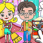 En ung familie er lige flyttet til byen, og de regner med dig til at forvandle deres slidte hus. Fjern støv og rod fra hvert rum, vask og ryd op, sorter og læg tøjet på plads, reparer ødelagte møbler og hvidevarer, og indret hvert rum med smart pynt. Tag opgaverne én ad gangen mens du gør hjemmet pænt, pynter og organiserer, så huset går fra kaos til et varmt og indbydende sted at bo.