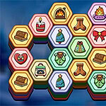 Hyggeligt vinterpuslespil, hvor du rydder banen ved at stable tre ens hex-brikker